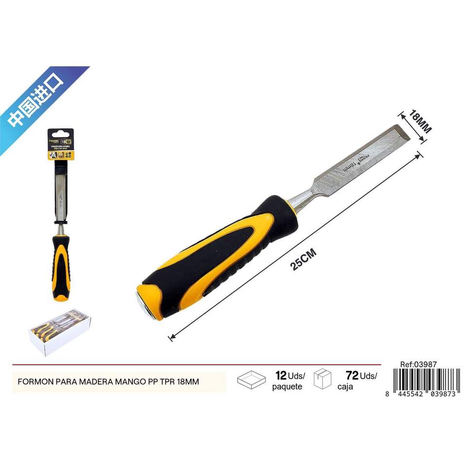 Jeu de ciseaux à bois 18mm avec manche en acier PP + TPR Outil de sculpture pour menuiserie et construction pour la sculpture et la sculpture