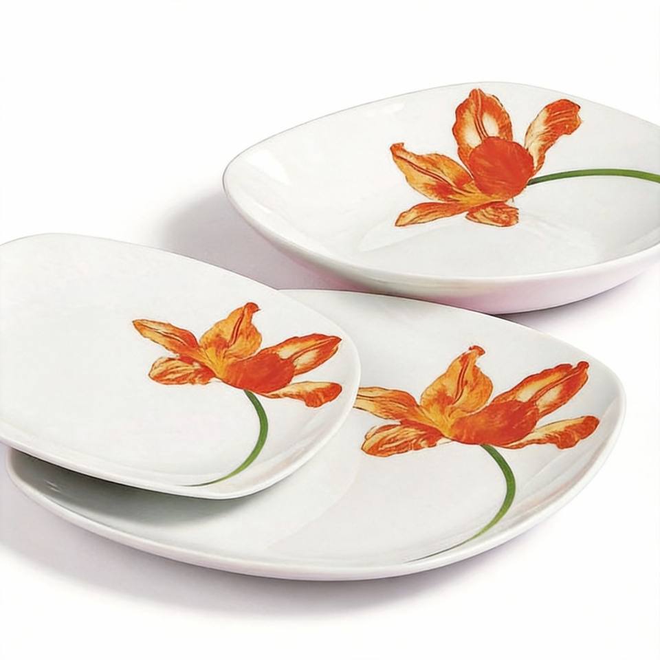 Service de table carré en porcelaine 18 pièces, écologique, avec assiettes blanches à motifs floraux, pour 6 personnes