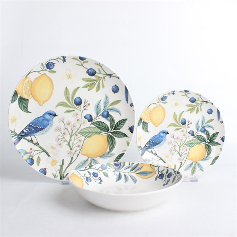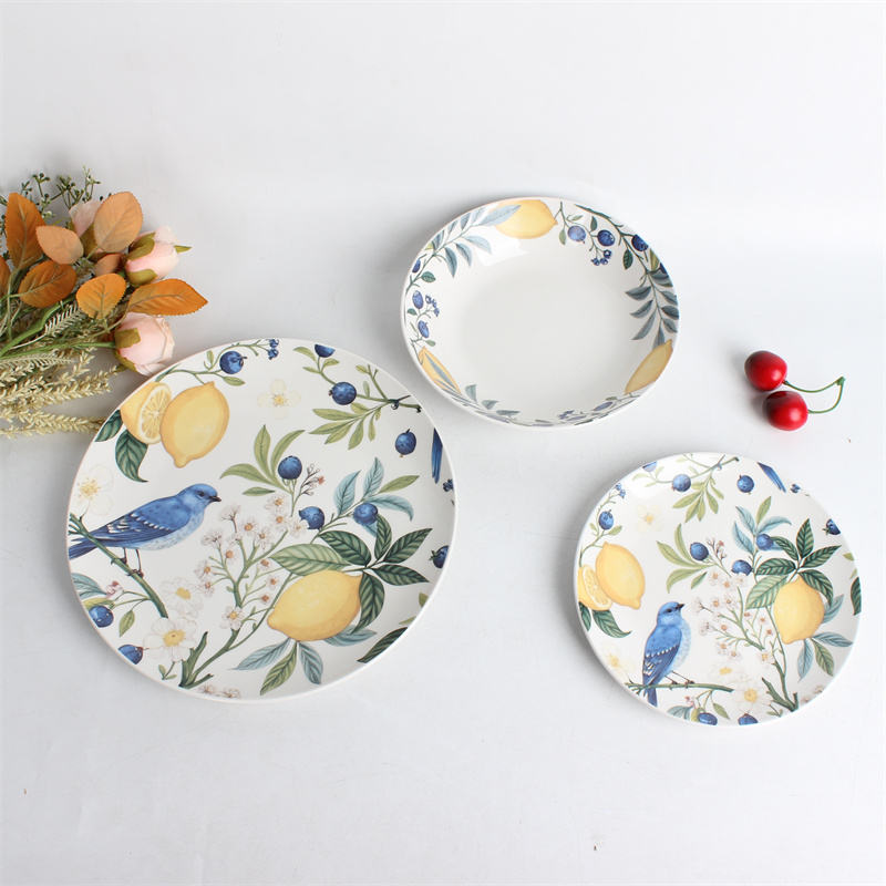 Nom du produit:Vaisselle entièrement décorée sur le thème de l'oiseau bleu et du citron