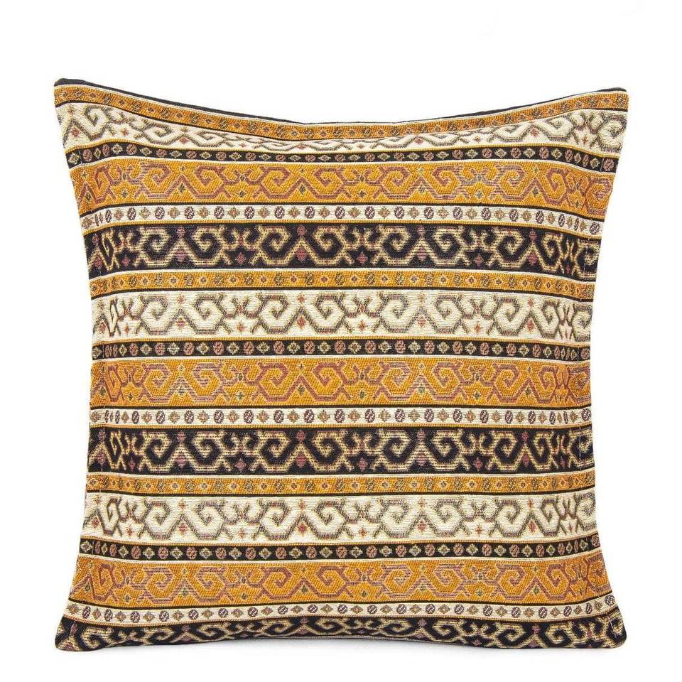 18x18 Living Room and Bedroom Portable Kilim Minder Hardal Geometric and Square Print on Jute and Wool for Sofas-Black