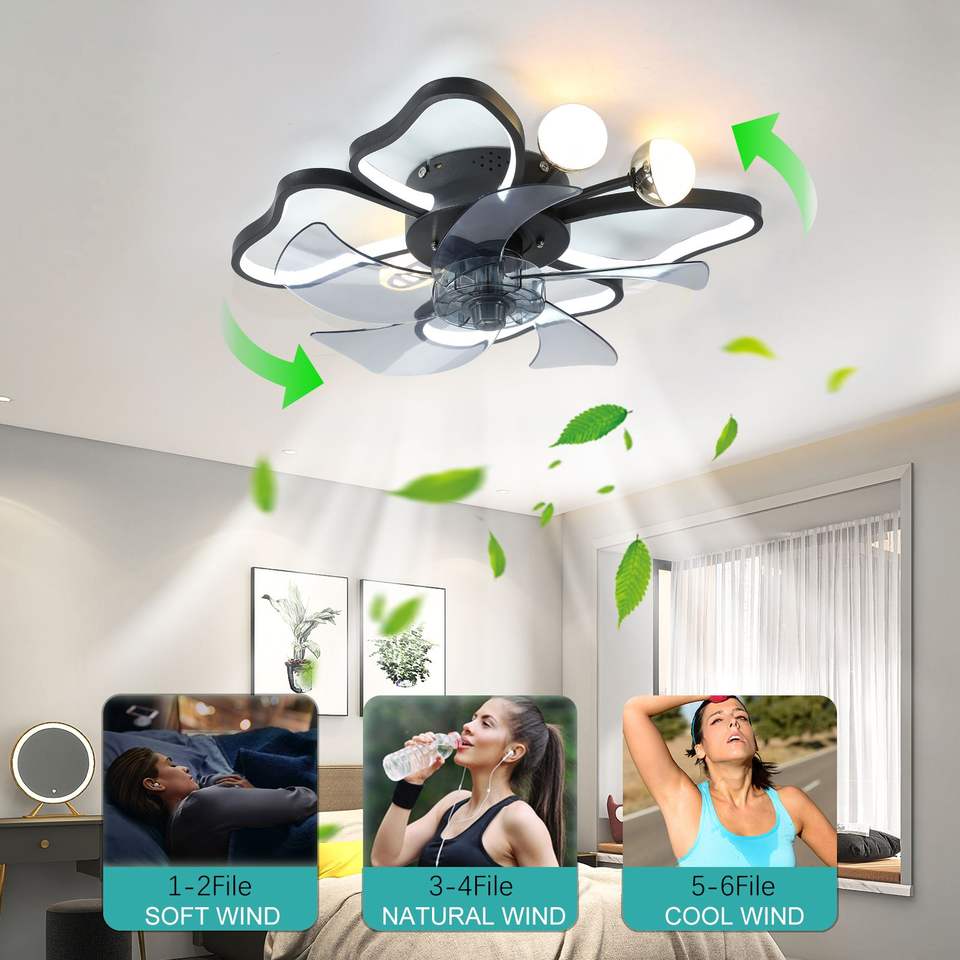 Ventilateur de plafond LED moderne de 19,7 pouces avec design papillon, télécommande, fonction de minuterie, silencieux pour chambre à coucher, salon, noir