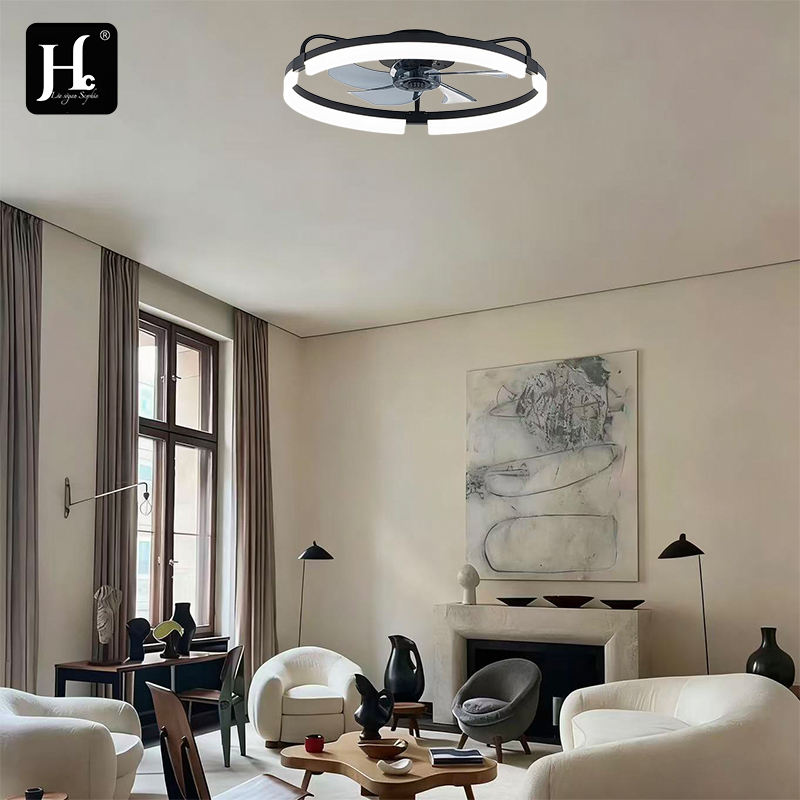 Ventilateur de plafond intelligent LED de 19,7 pouces avec lumière LED pour la lecture, rotatif, pour salon, maison, avec télécommande