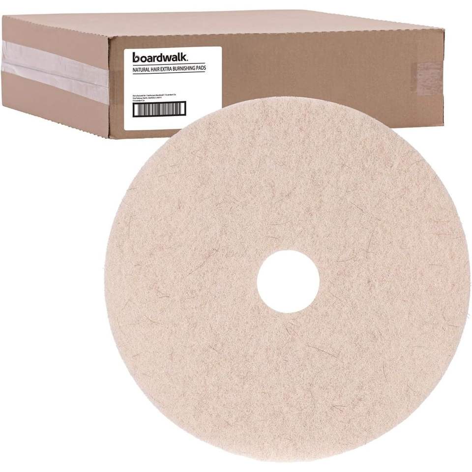 19 pouces. Tampons de nettoyage pour sols en poils de porc naturels beiges, 5 pièces/paquet - Boardwalk BWK4019NHE