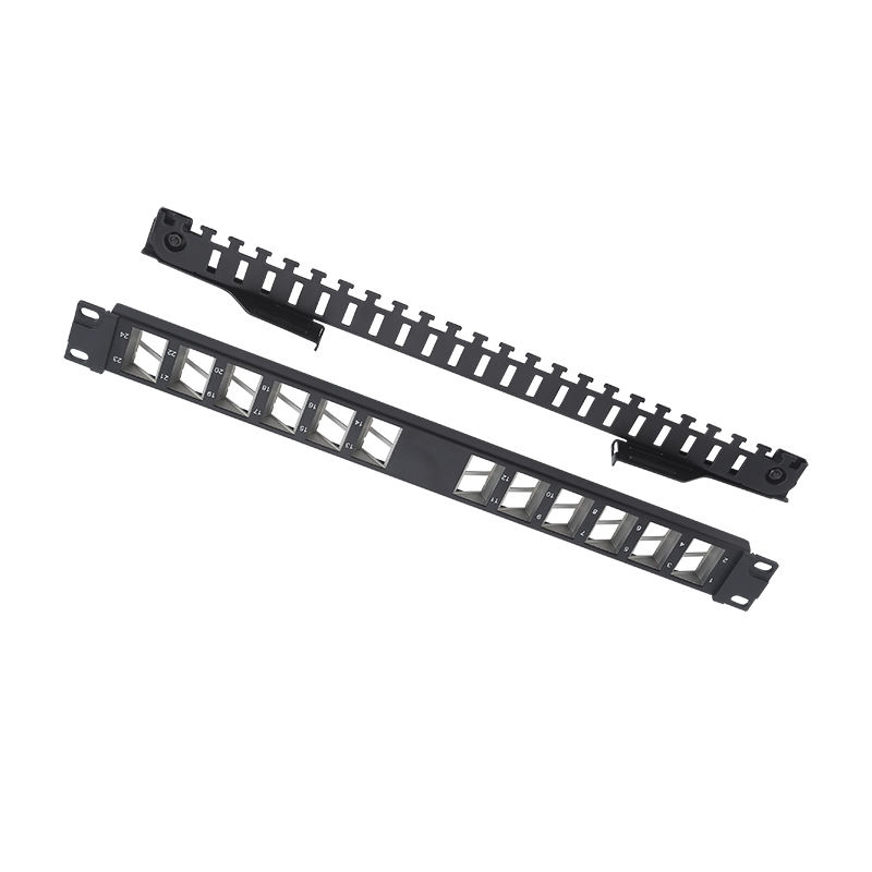 Panneau de brassage combiné fibre/cuivre blindé FTP STP 19 pouces 1U 24 ports à montage en rack, coudé à 45 degrés