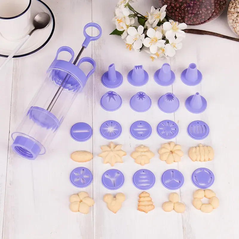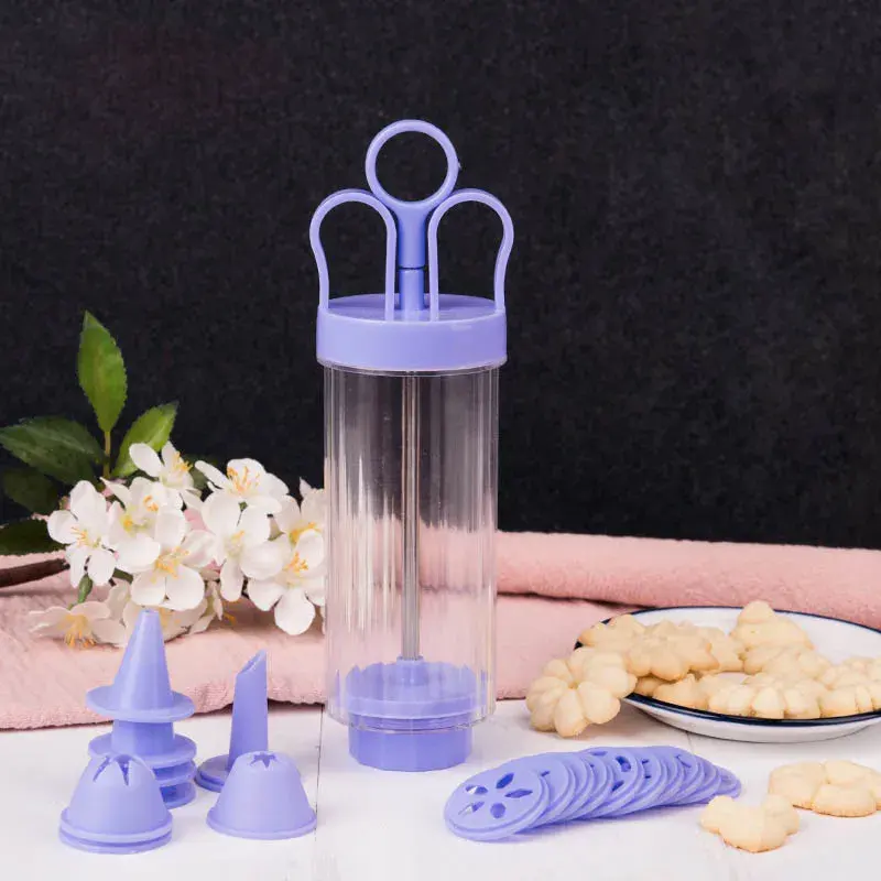 Lot de 19 feuilles décoratives en plastique en forme de fleur et pistolet à biscuits avec buse à glaçage pour la pâtisserie Outils de cuisine pour la cuisson