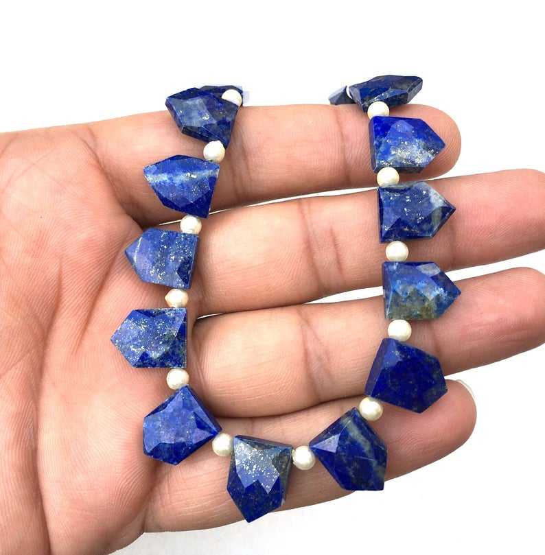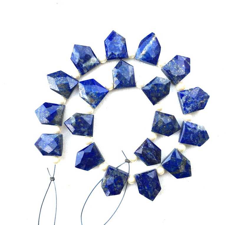 Perles de Lapis-Lazuli naturel à facettes en forme de pentagone pour fabrication de bijoux, 19 pièces, 1 brin