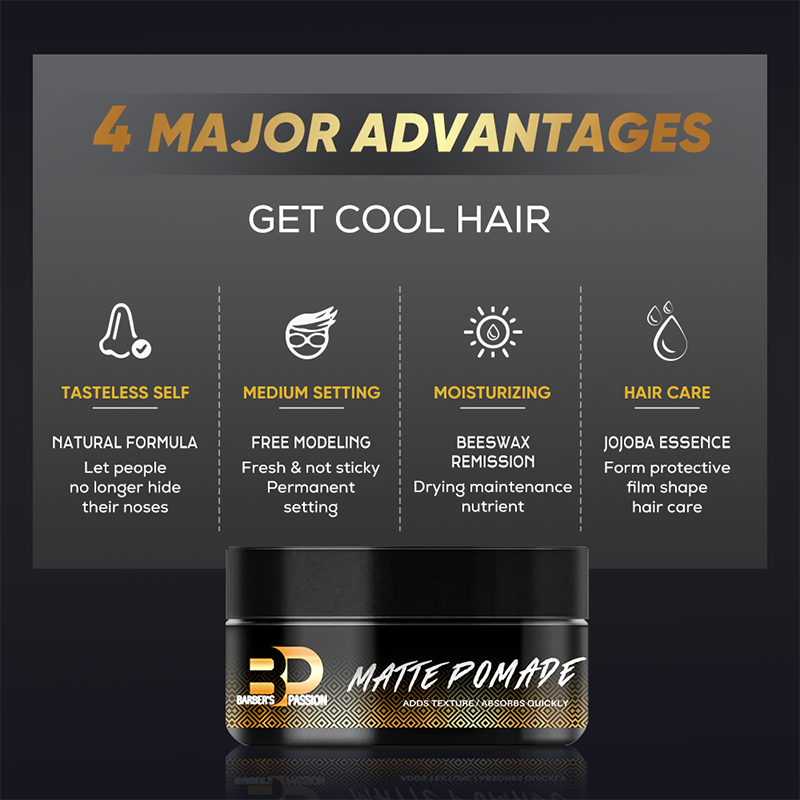 BARBERPASSION Argile coiffante forte tenue, mate, soluble dans l'eau, sans résidu, pour cheveux et barbe, ISO22716/GMPC