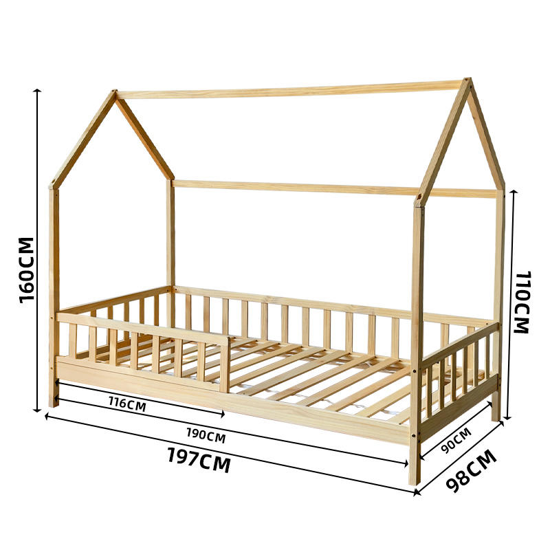 Lit pour enfants en bois à cadre bas de 190*90 cm, lit Montessori pour enfants, lit pour tout-petits