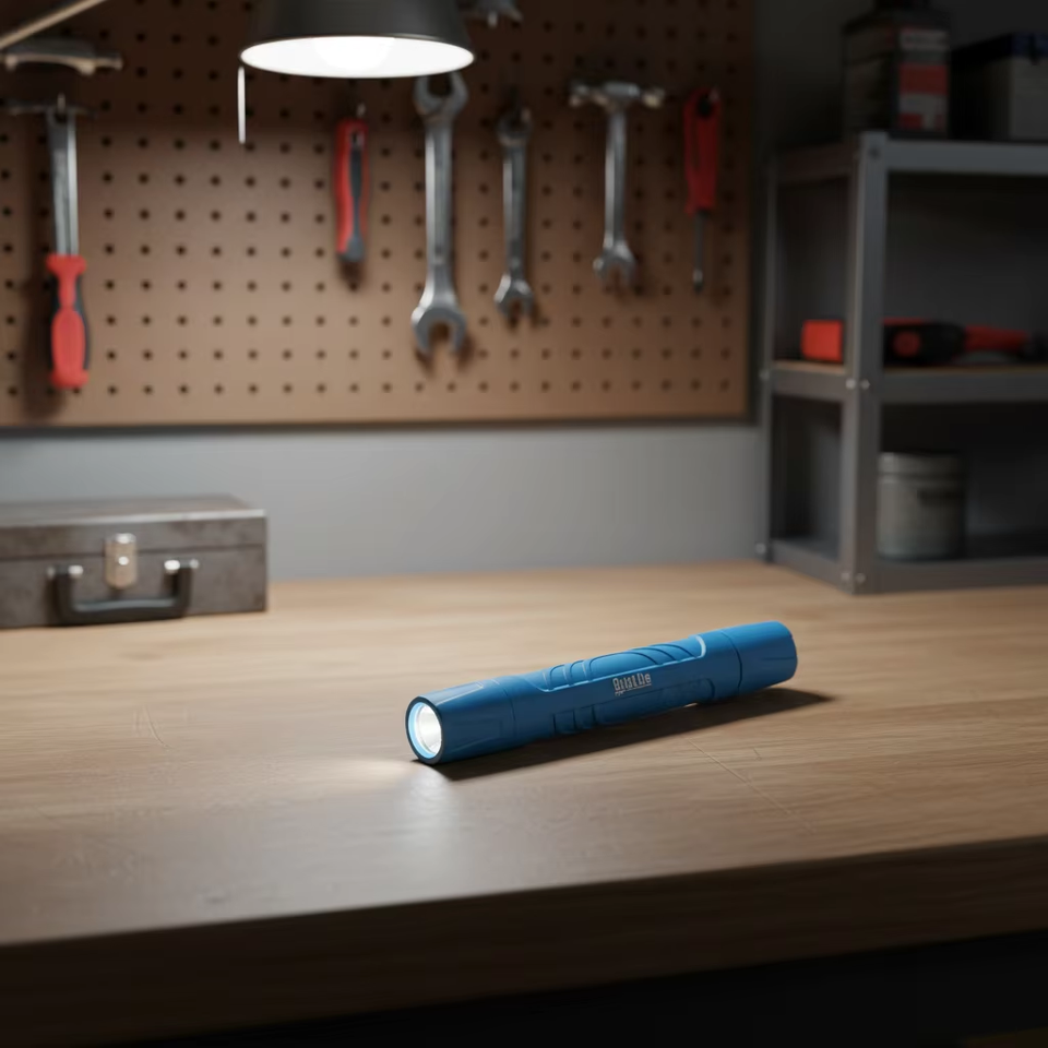 Lampe torche industrielle LED 190lm, étanche IP64, protection contre les chutes de 2m, corps en polymère antidérapant, bleu, tactique, pour un usage quotidien