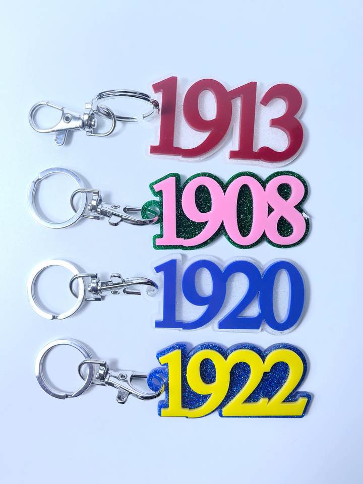 Porte-clés en acrylique avec lettres grecques 1913 1920 1922 1922, porte-clés en plastique léger pour sac