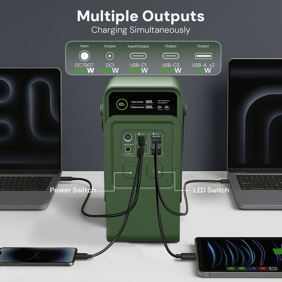 Station d'alimentation portable 192Wh/200W avec batterie LiFePO4 et 1 panneau solaire pour le camping et les situations d'urgence