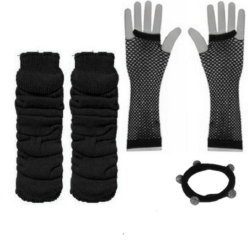 Nom du produit:80s résille gants Bracelet genouillères cheveux cravate ensemble