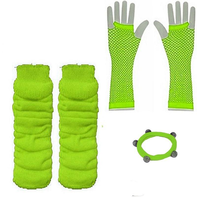 80s résille gants Bracelet genouillères cheveux cravate ensemble