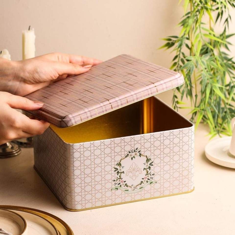 198x198x100mm Boîte de rangement en métal rose Carré 3.7L Paniers en métal