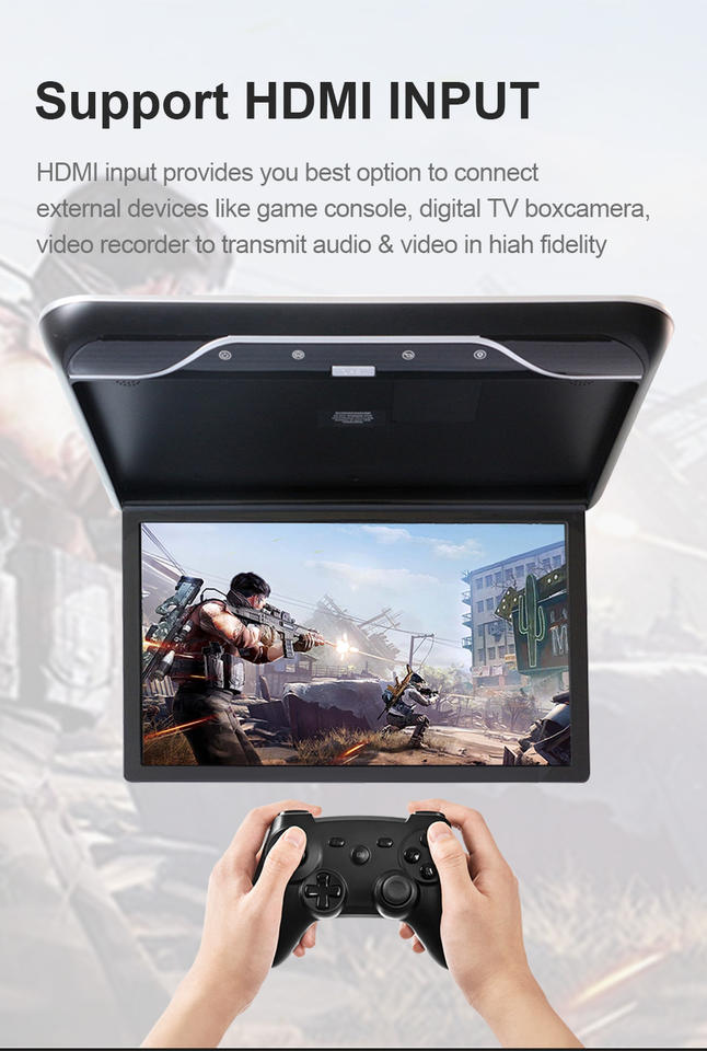 Écran IPS 19 Pouces Android pour Toit, Moniteur de Plafond Multimédia pour Camping-Car, RV et Voiture, Support TV