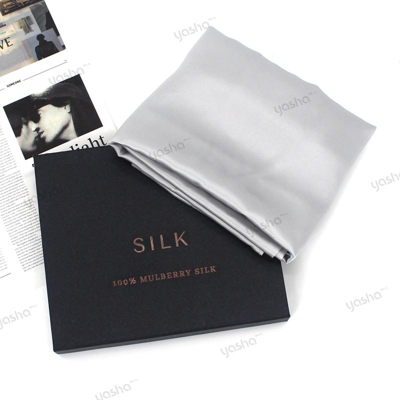 19mm22mm cadeau De Mariage personnalisé étiquette argent soie couverture 100% de mûrier en gros taie d'oreiller en soie avec chouchous visage maskes