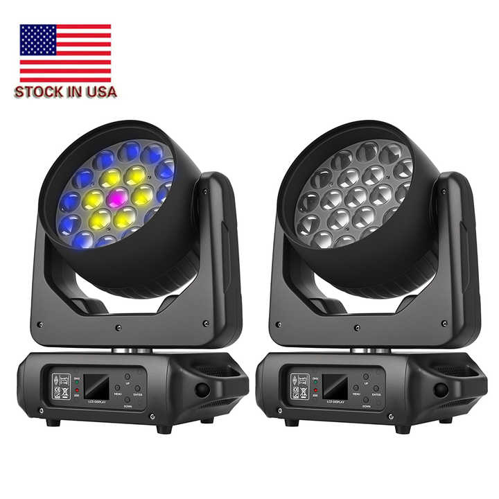 Projecteur de scène à tête mobile 19x15W RGBW 4-en-1 LED avec zoom, faisceau, wash, stroboscope, effet DMX, activé par le son, éclairage professionnel pour DJ