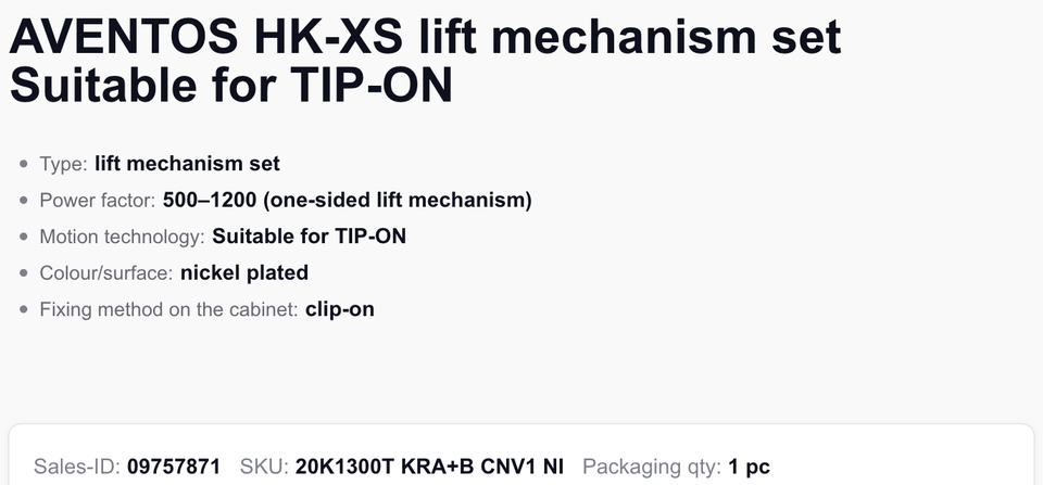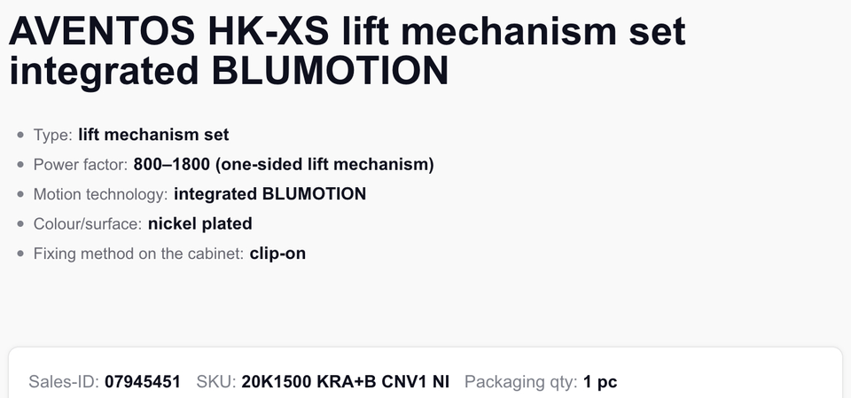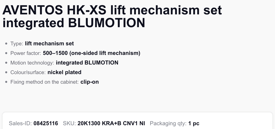 1Blum AVENTOS HK-XS Ensemble de mécanisme de levage Small Wizard, adapté à la fermeture en douceur, placage nickel, plusieurs options de couple disponibles