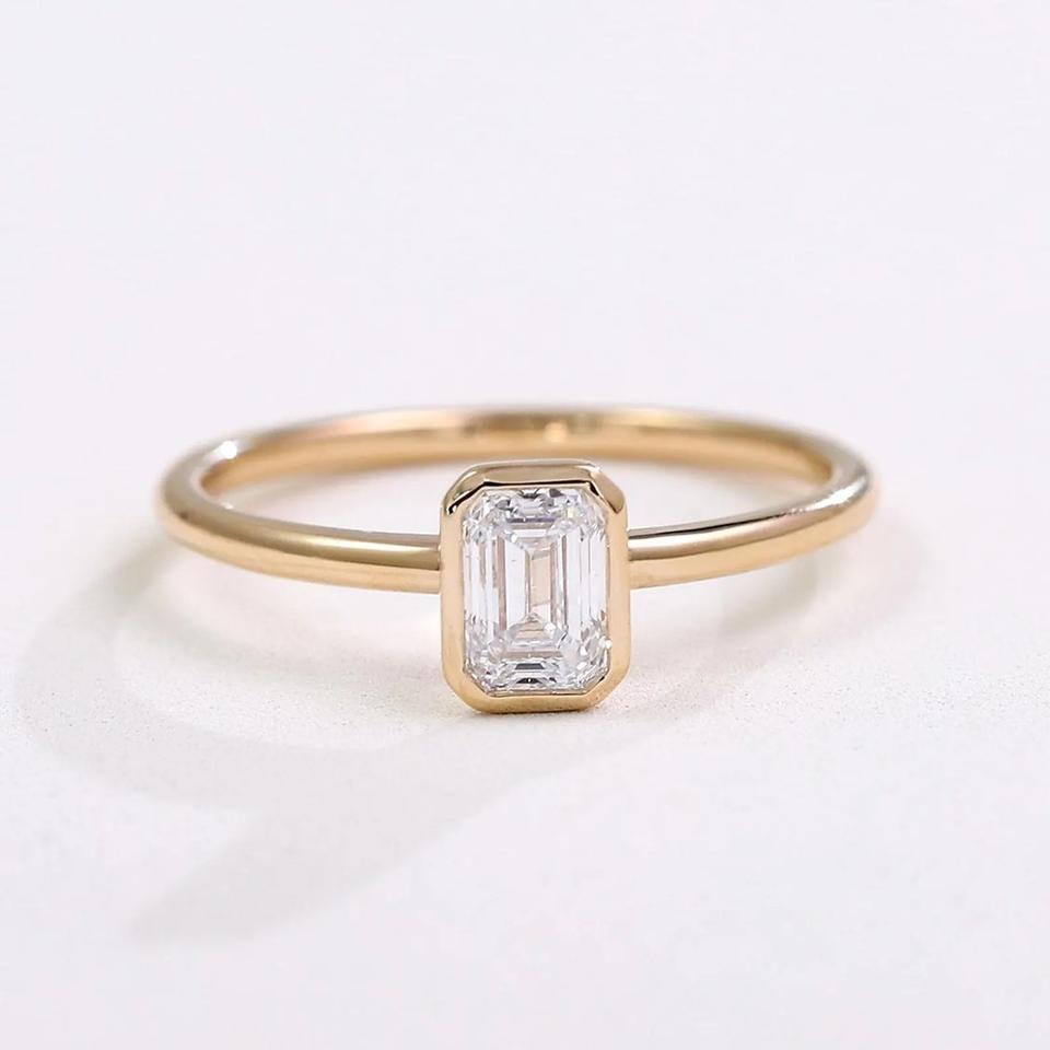 Bague de fiançailles en diamant de laboratoire taille émeraude 1CT, sertie en or 14K, certifiée