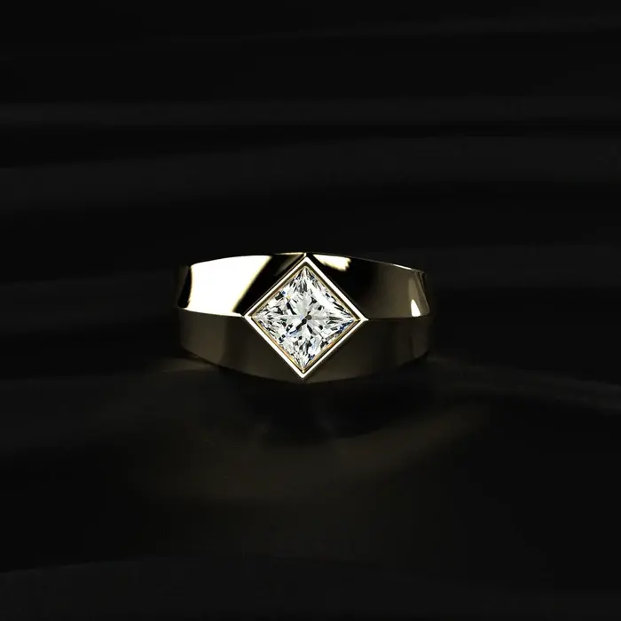 Bague signet 1 carat en diamant taille princesse, design spécial pour homme, pour fiançailles et mariage, de fournisseur et fabricant indien.