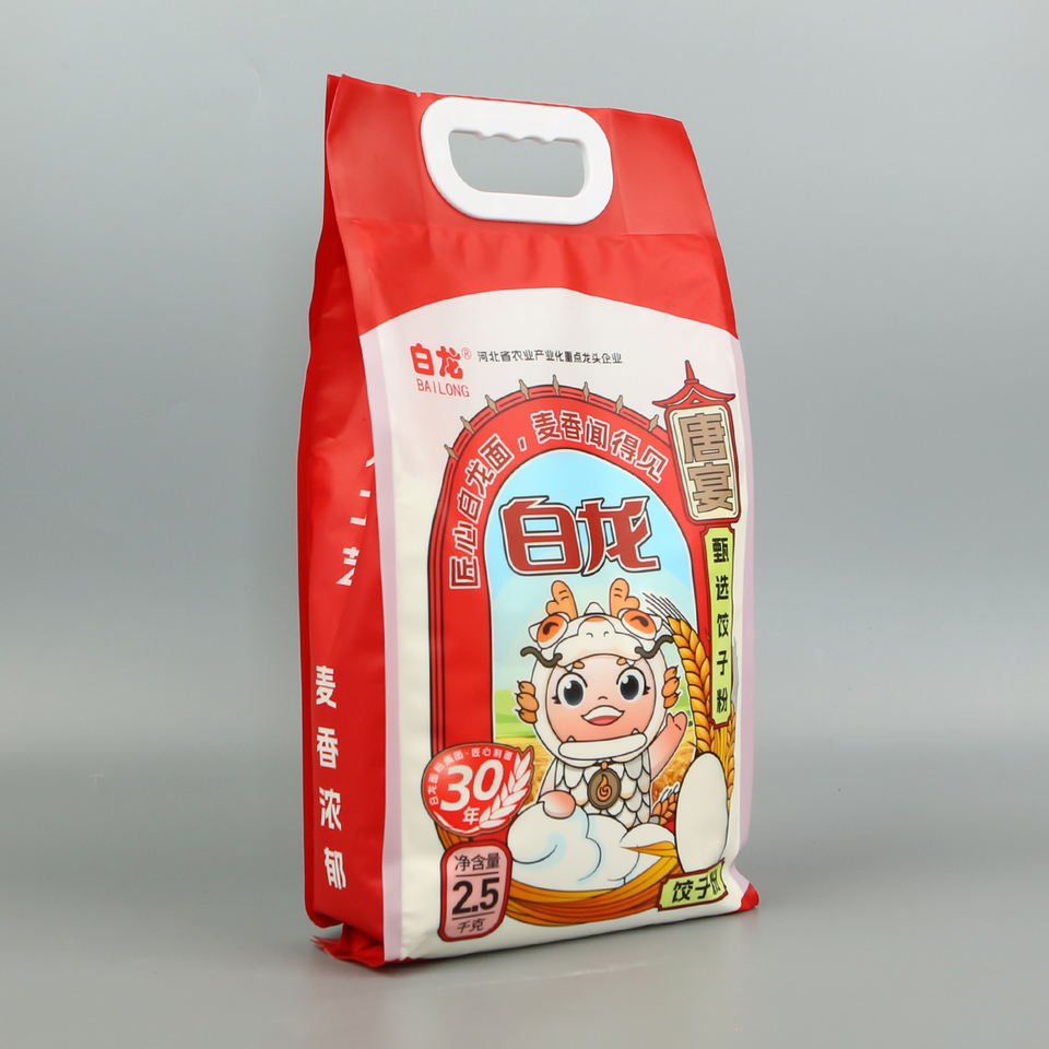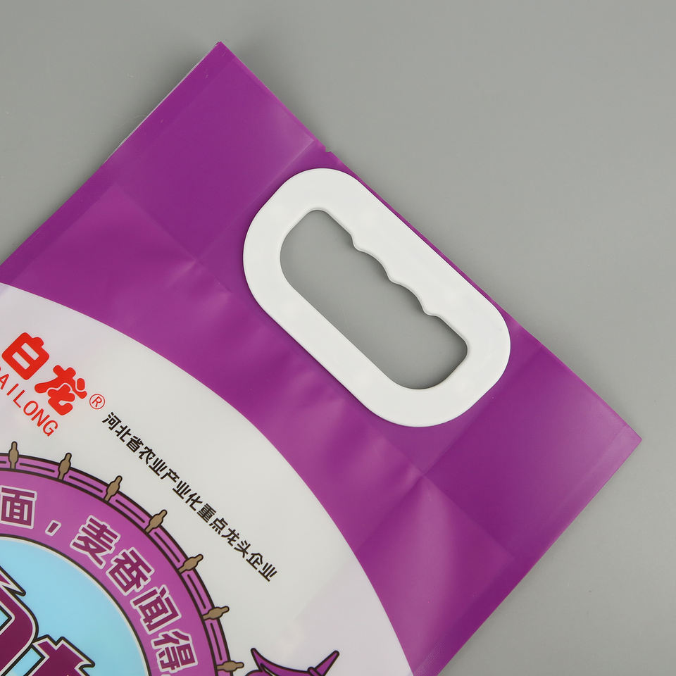 Nom du produit:Sacs d'emballage en papier plastique pour riz et farine de blé avec fenêtre et poignée