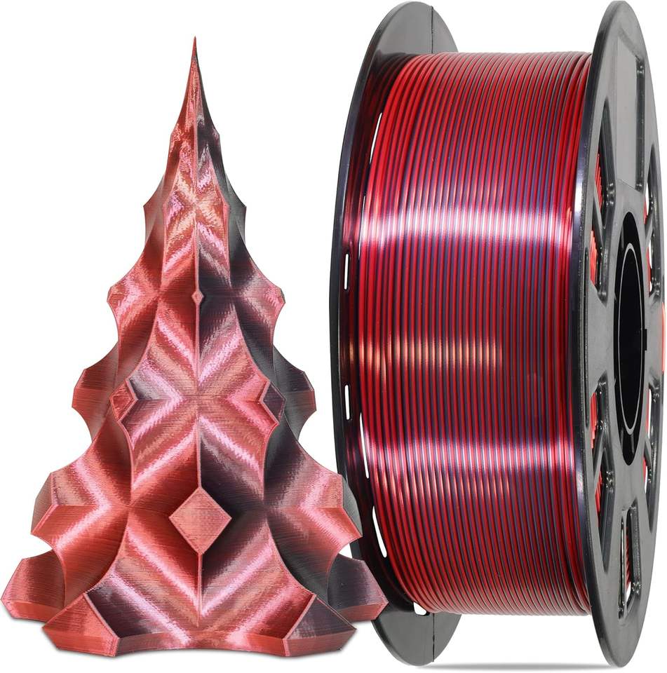 Fil PLA Soie Bicolore Brillant Rouge et Noir 1,75 mm 1KG – Nouvelle Version pour Imprimantes 3D – Prise en Charge des Tiges Plastiques