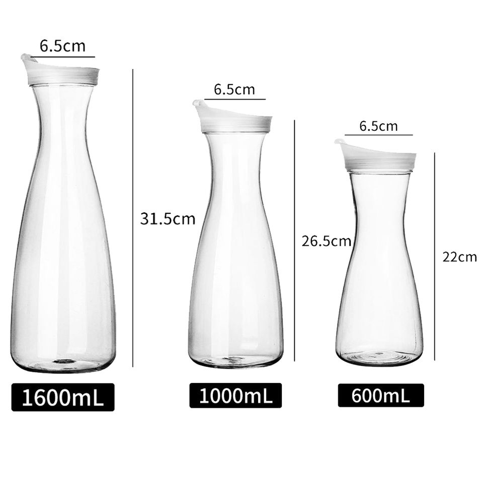 Pichets à eau pour bar Mimosa 1L 1.5L 50oz 1000ml PC Pot à jus avec couvercles pour réfrigérateur Whisky Café Vin Emballage Carafe en plastique