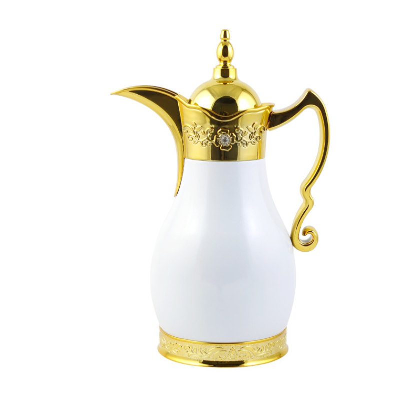 Théière en acier inoxydable de style arabe de 1 L, doublure en verre de style moyen-oriental, thermos doré avec poignée, personnalisable