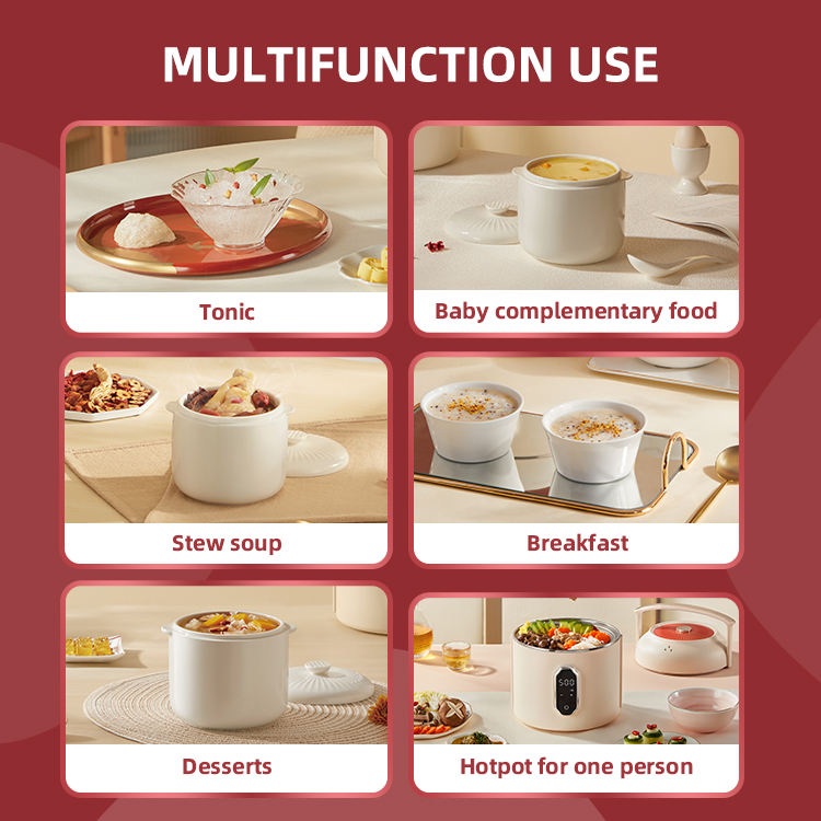 Marmite électrique multifonctionnelle puissante tout-en-un de 1L grande capacité pour la cuisine chinoise, en céramique, pour ragoûts et cuisson lente