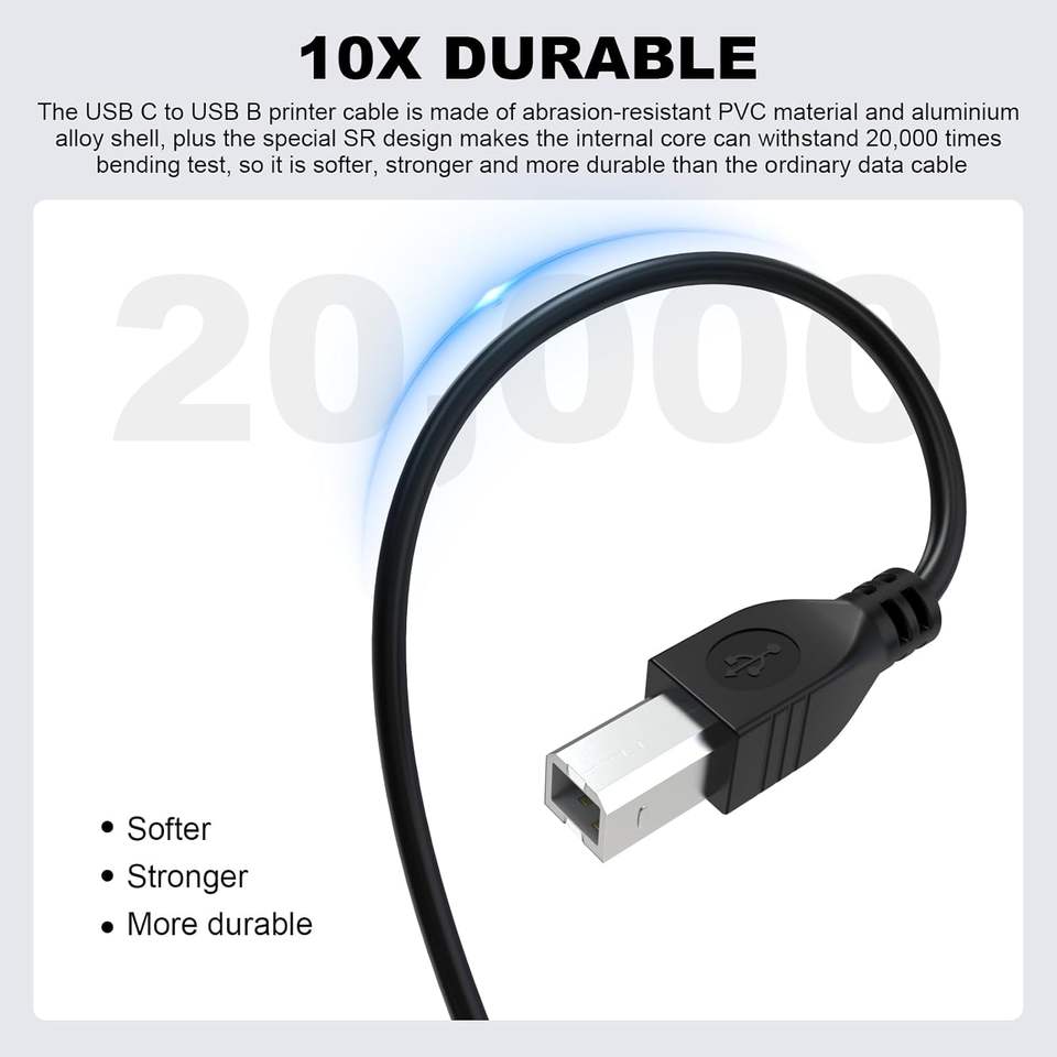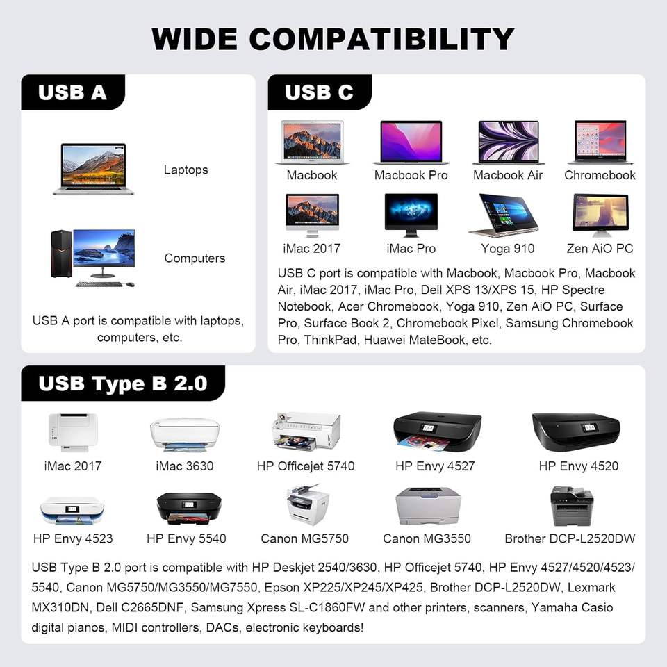 Câble de scanner pour imprimante USB A/C vers USB B, 1m, 2m, 2 en 1, câble de contrôleur MIDI pour iPhone et ordinateur portable, pour piano numérique Yamaha Casio