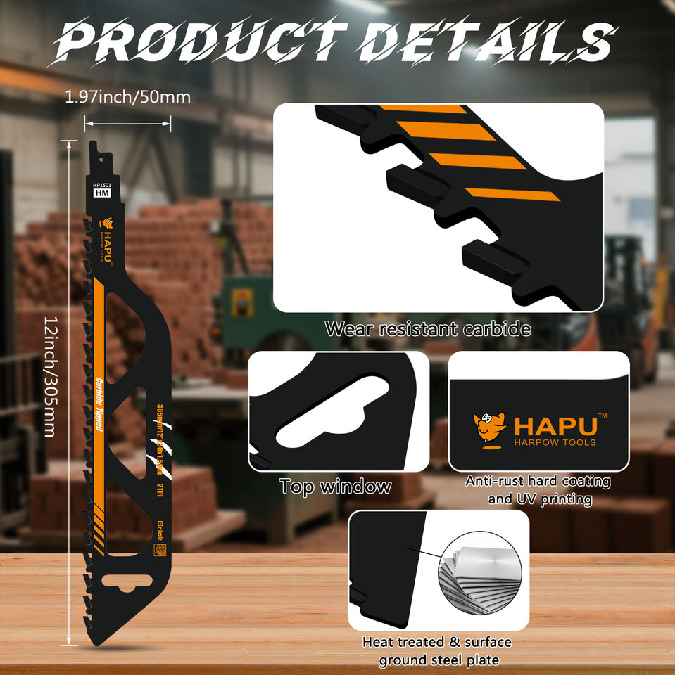 1 paquet de lames de scie alternative en carbure de 12 pouces, 2TPI, lame de scie de démolition pour couper la brique rouge, la brique légère, le fibrociment