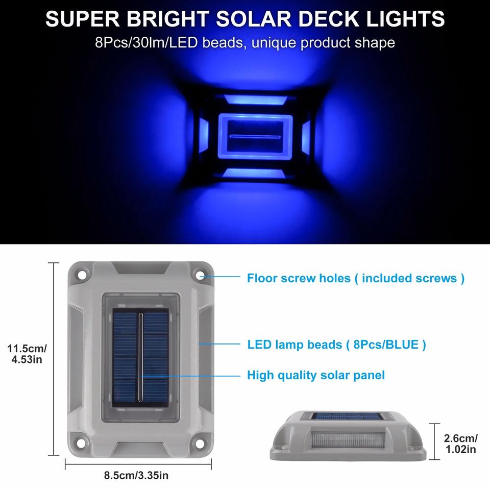 1PC Lampe Solaire Extérieure à Lumière Bleue, Lampadaire Solaire, Lampe de Jardin, Lampe Encastrée pour Escalier, Lampe Solaire Enterrée pour Terrasse