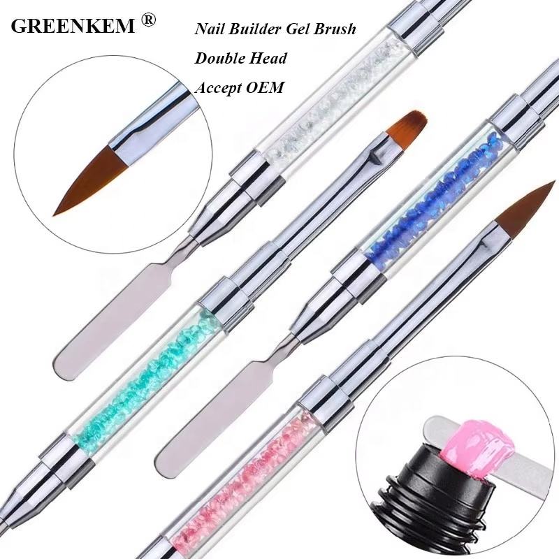 1 pièce double tête UV Gel Extension strass diamant dessin stylo brosse vernis rose bleu arc-en-ciel outil spatule à ongles