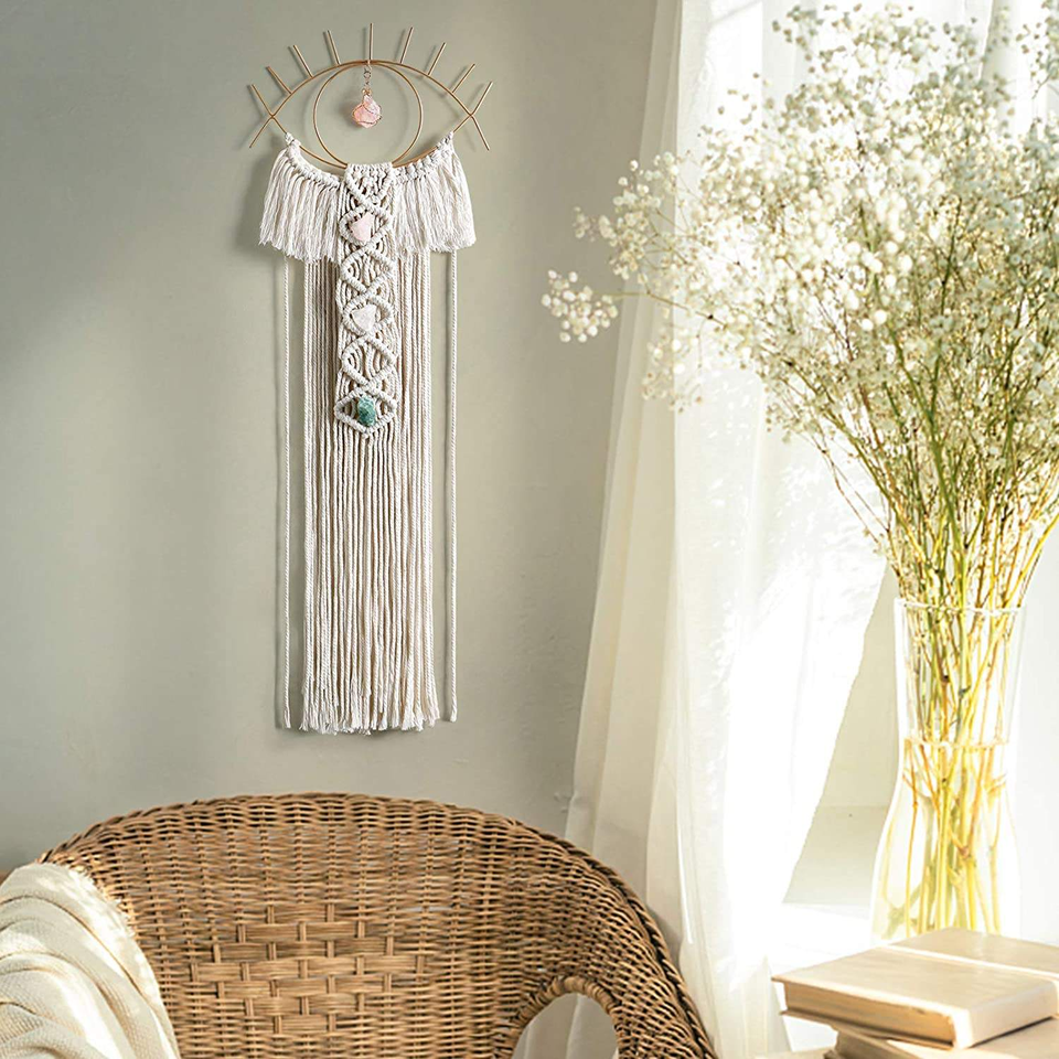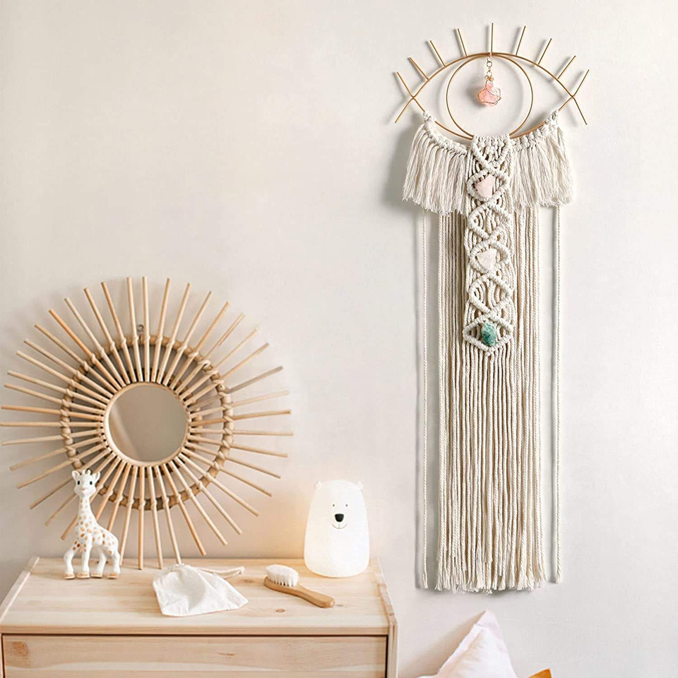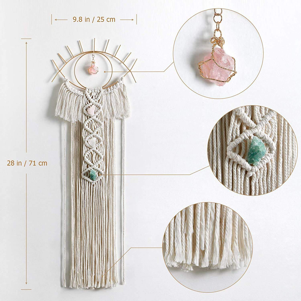 1 pièce Tapisserie murale œil porte-bonheur en corde de coton faite à la main, style INS, tissée avec pierres naturelles, moderne, lavable, pour décoration de salon et d'anniversaire