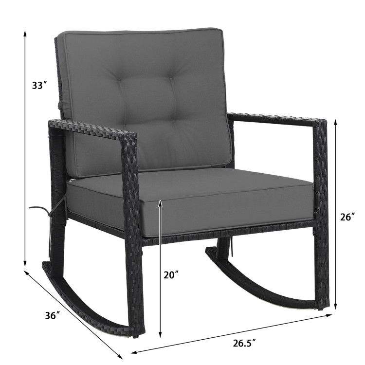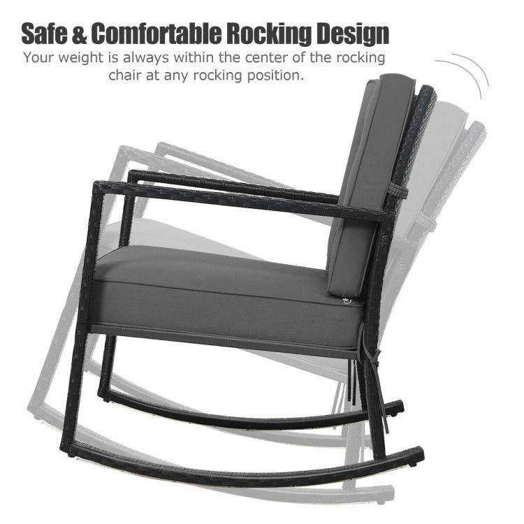 1 chaise à bascule en rotin pour patio extérieur avec coussin, mobilier de jardin