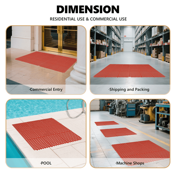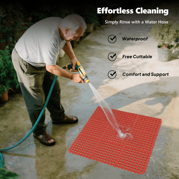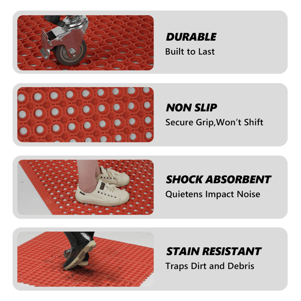 Tapis de cuisine anti-fatigue rouge 90x90x1,2 cm, épais, antidérapant, confort ciblé pour la cuisine