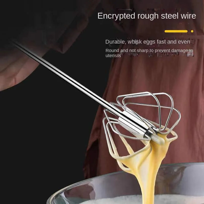 1 pièce Batteur à œufs semi-automatique en acier inoxydable 304, fouet manuel, mélangeur à main, agitateur à œufs auto-tournant pour cuisine