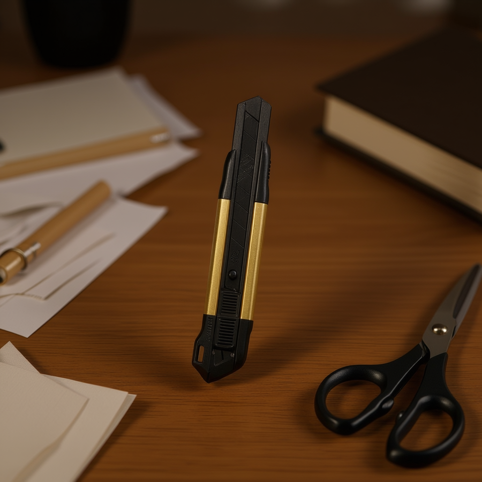 Couteau utilitaire On Teck, acier noir, manche doré, lames détachables, outil de coupe pour le bureau