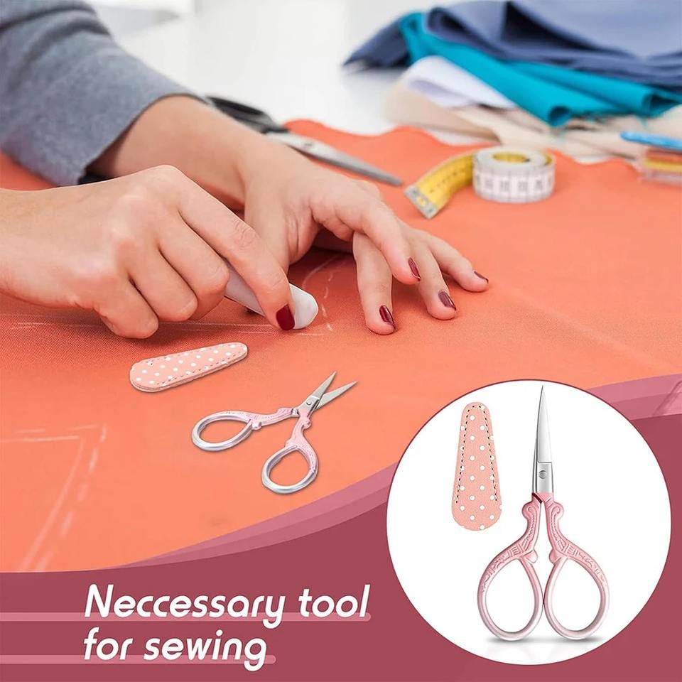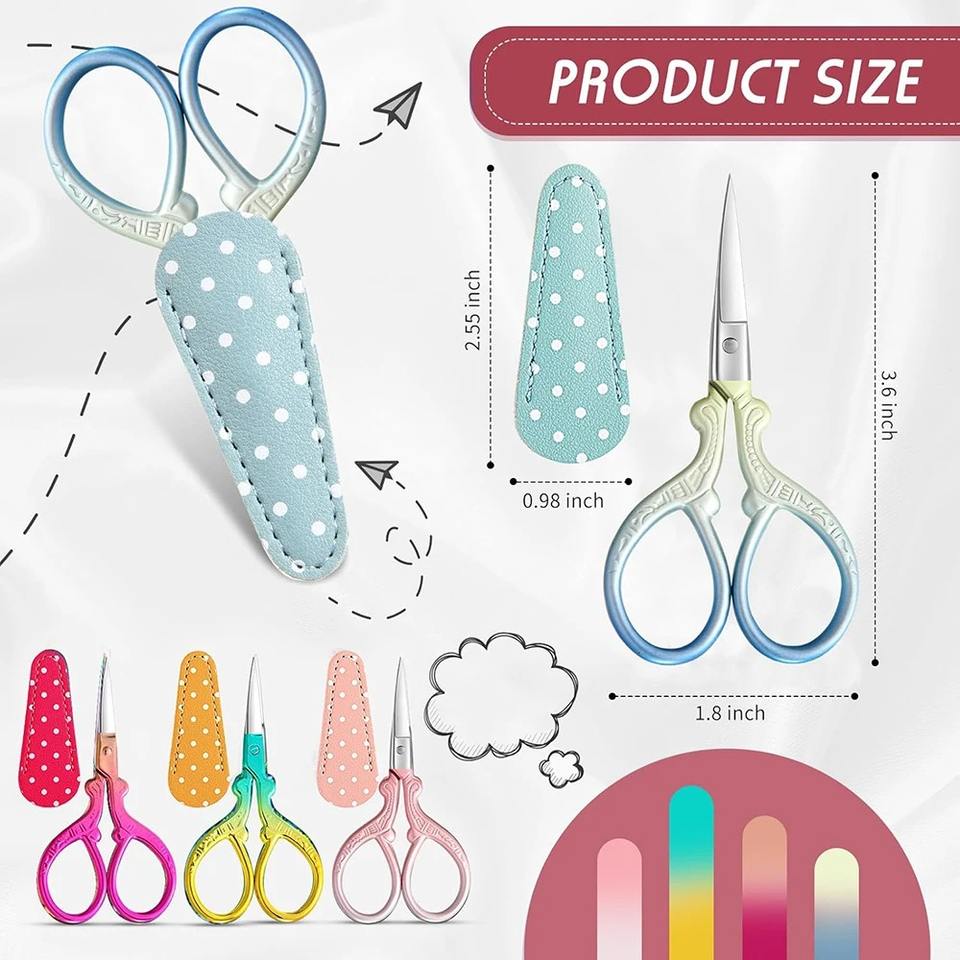 1 pièce Ciseaux à broderie pour cuticules avec étui en cuir synthétique, 3,6 pouces, en acier inoxydable, ciseaux de couture vintage pour travaux d'aiguille