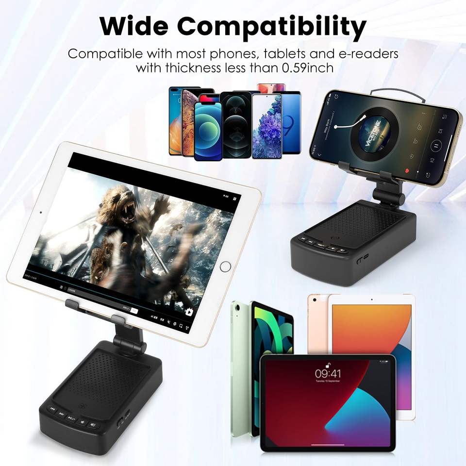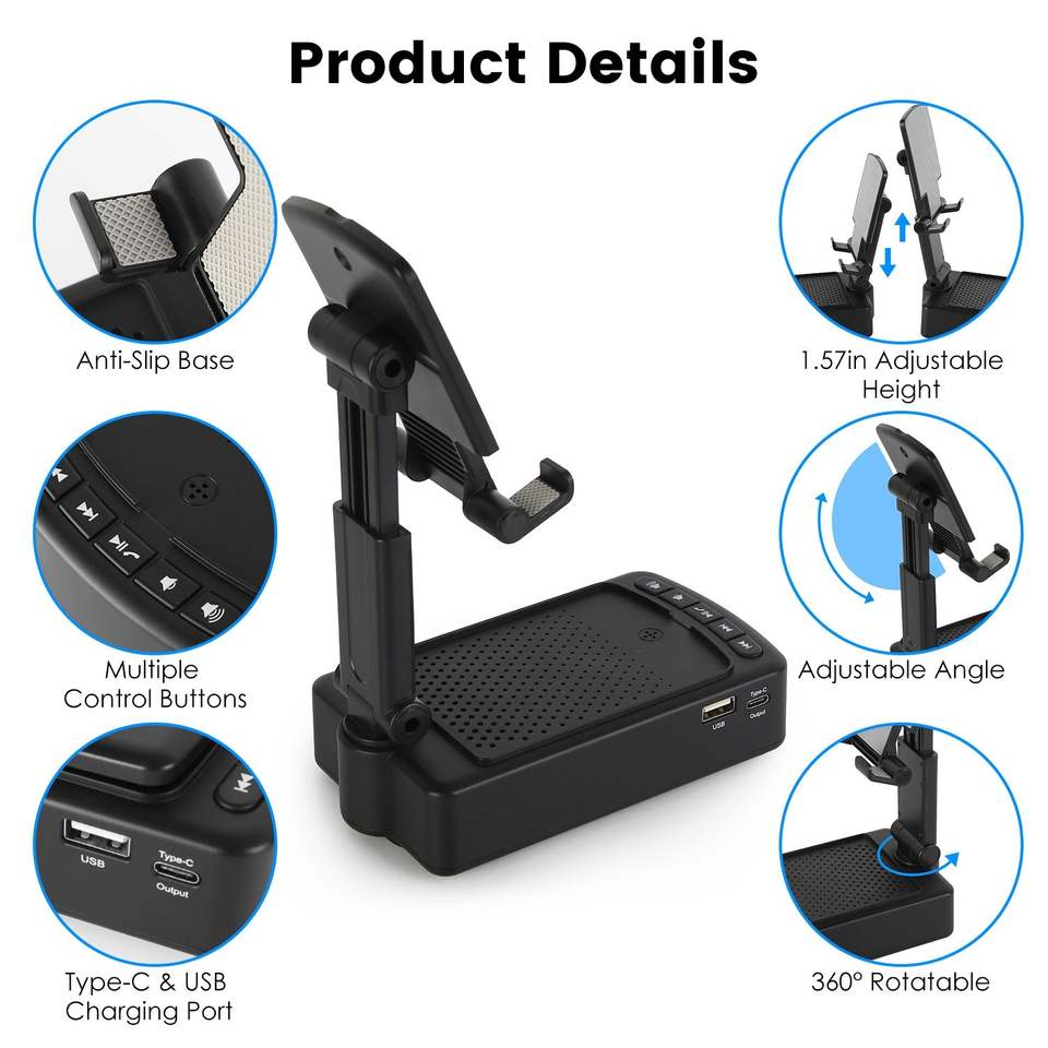 1 pièce Haut-parleur sans fil HD Surround, support de téléphone portable, batterie externe portable pliable avec base antidérapante, chargeurs multifonctions