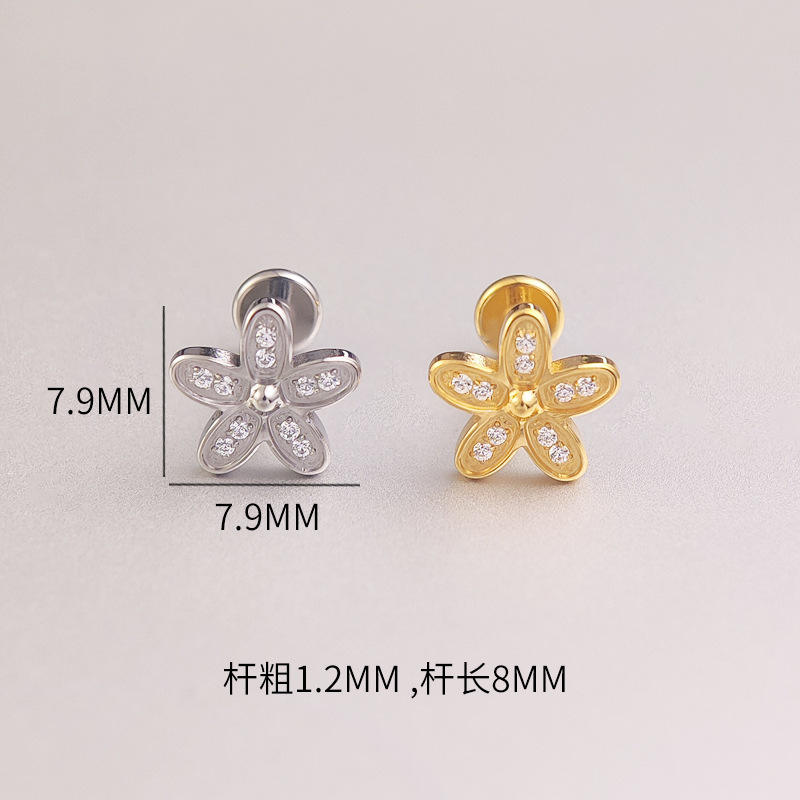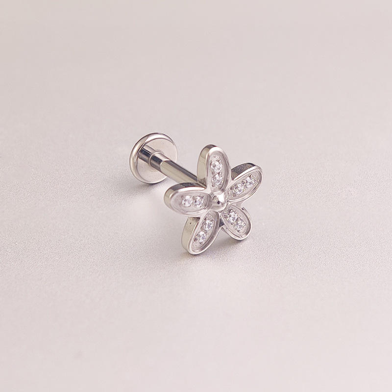 Boucles d'Oreilles Labret en Acier Inoxydable avec Fleur Étoile et Lèvres Piercing Zircon Monroe Anneau d'Oreille Tragus Helix Piercing Cartilage, 1 Pièce
