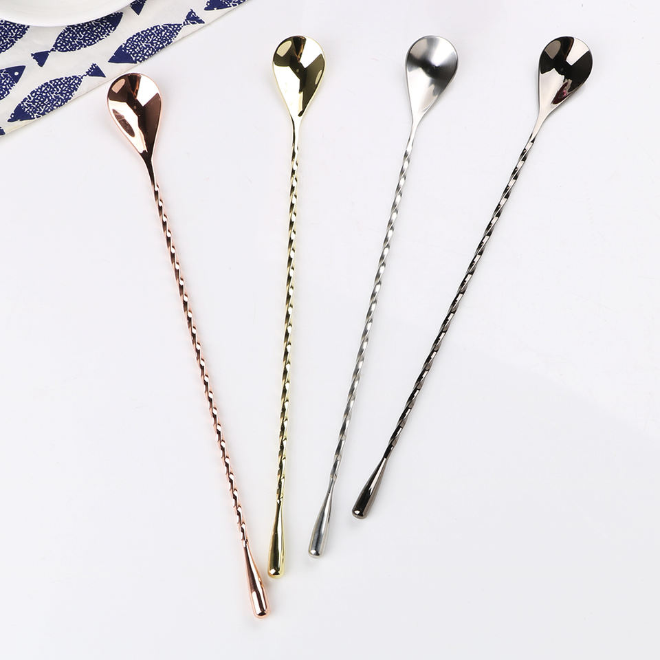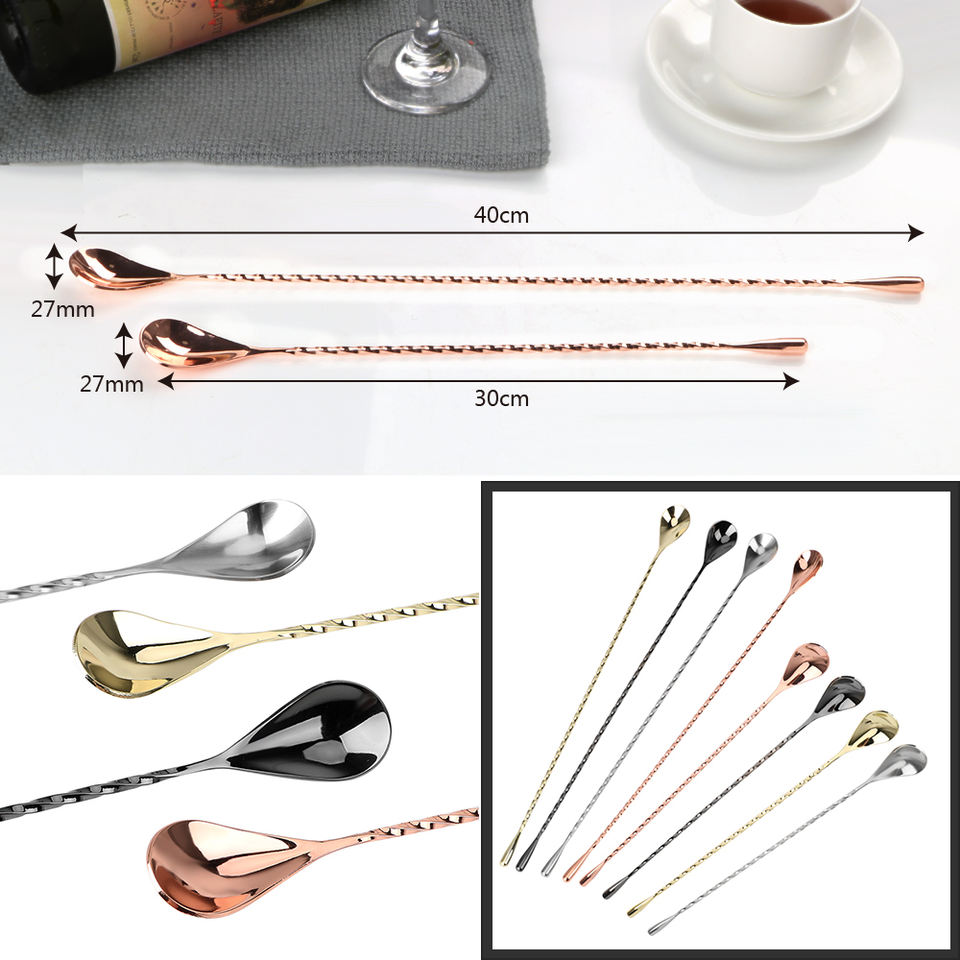 1 pièce Cuillère à mélanger en acier inoxydable de qualité supérieure, motif en spirale longue, idéale pour les cocktails, le malt, le lait, les jus, les vinaigrettes