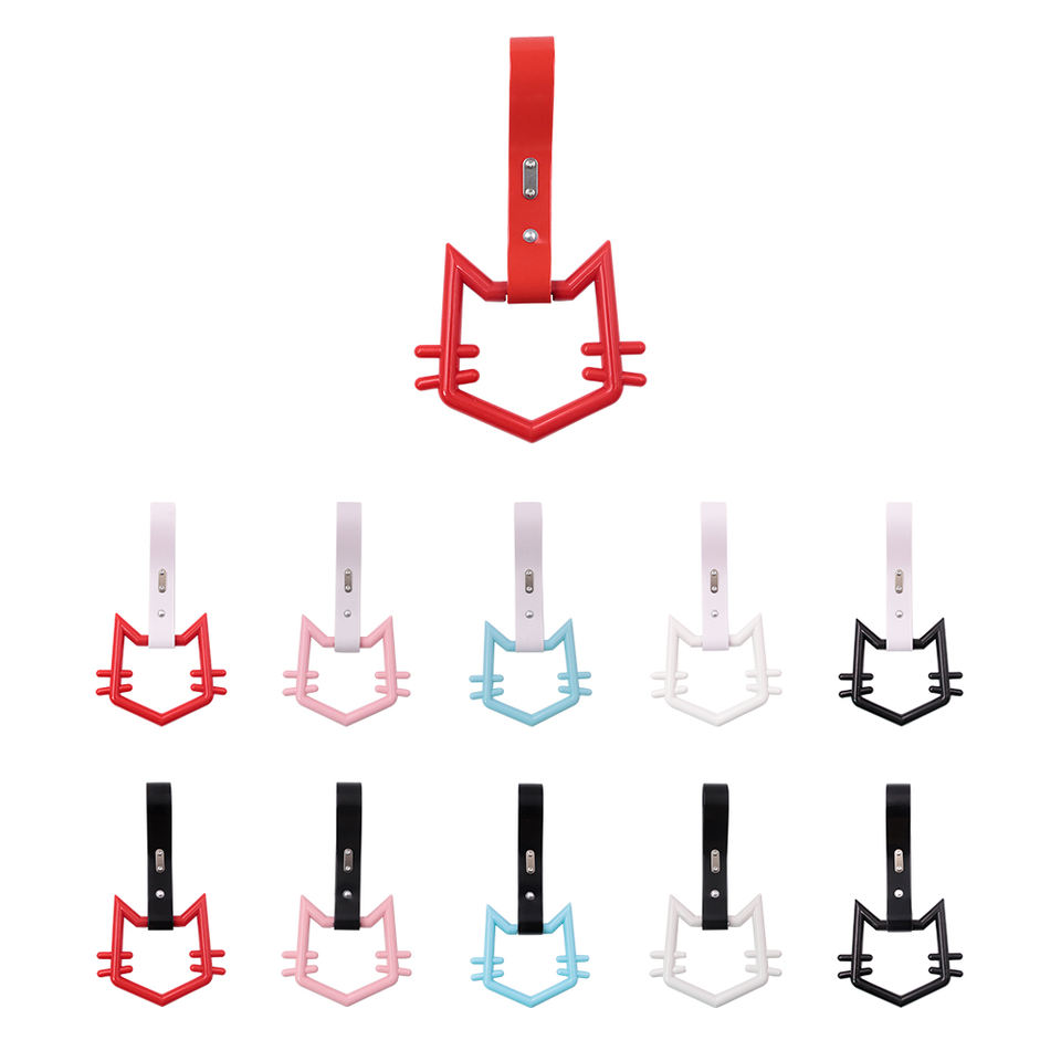 1Pcs Universal JDM Style TSURIKAWA Cute Unluck Cat Anime Cartoon Ring Subway Train Bus Handle PVC Strap for Car Styling