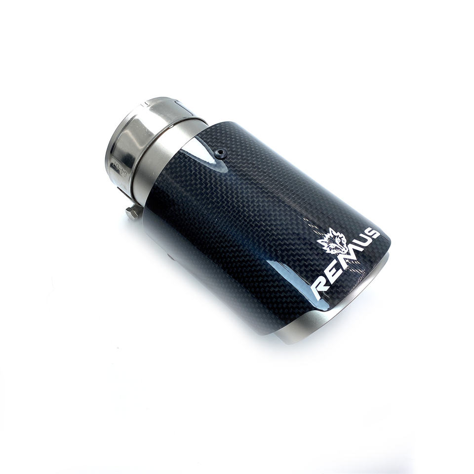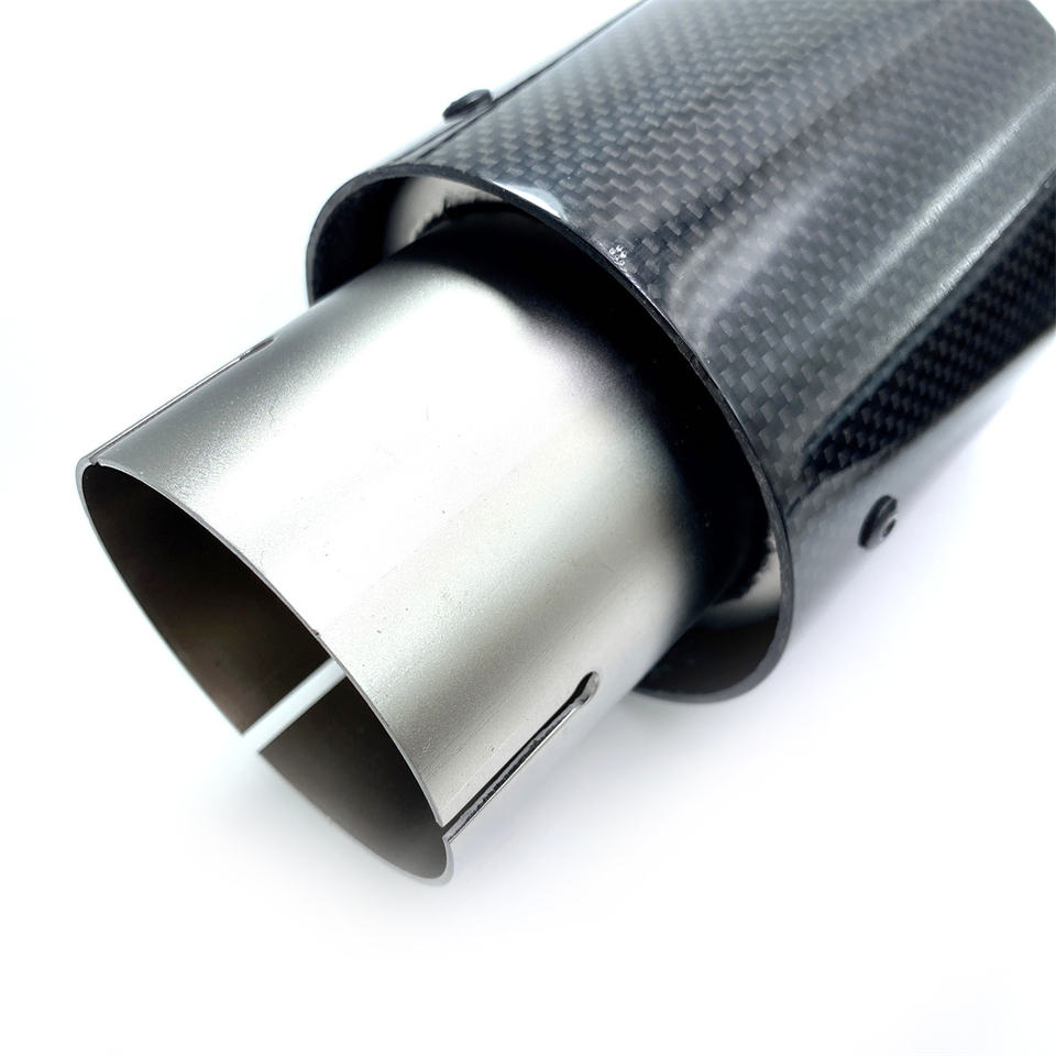 1 Pièce 2,5 Pouces Universel Embout d'Échappement en Fibre de Carbone Brillant Tuyau d'Échappement en Acier Inoxydable Argenté Embout d'Échappement Remus