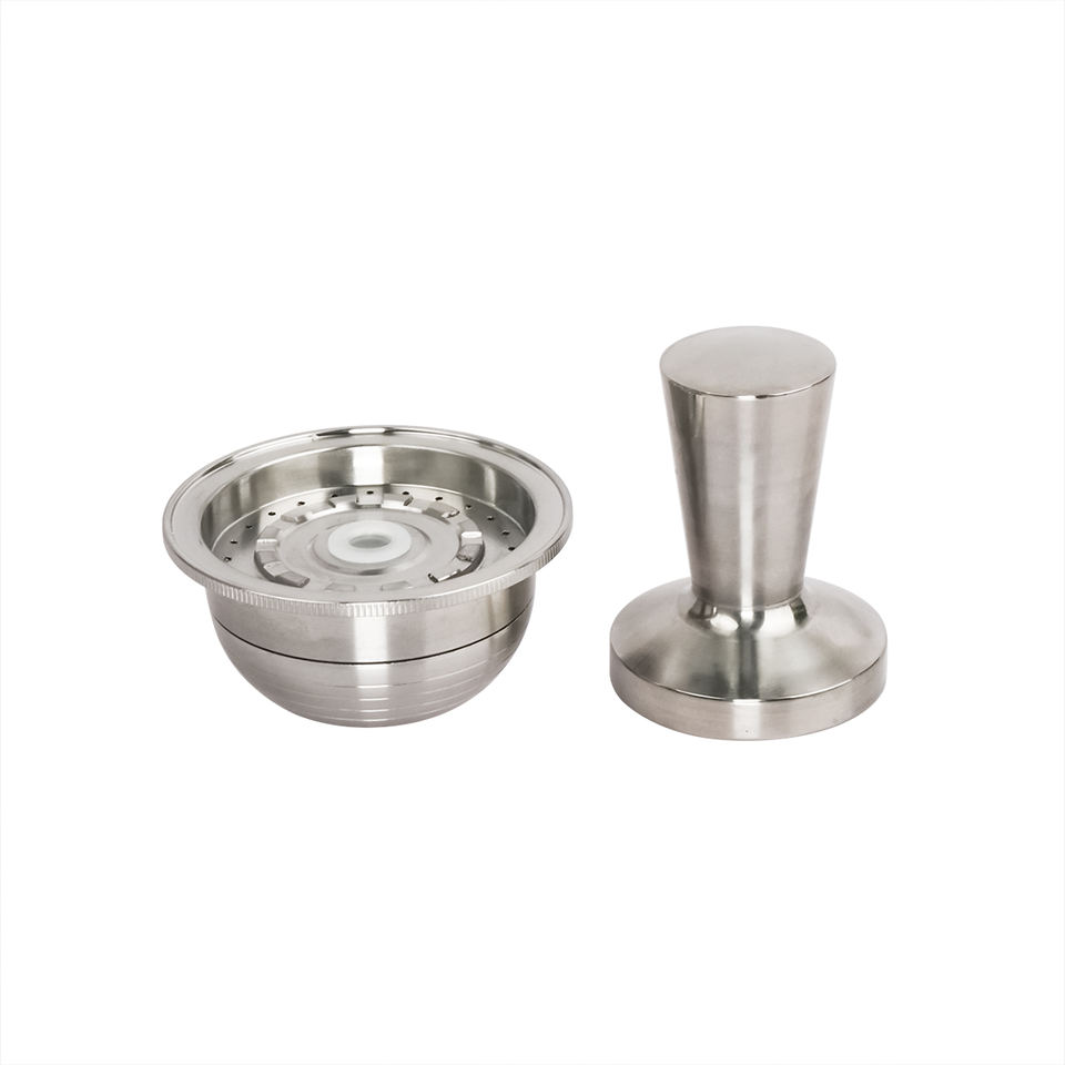 1Pod 1Tamper Set Capsule Réutilisable en Acier Inoxydable avec Filtre à Café Compatible avec les Cafetières VERTUOLINE