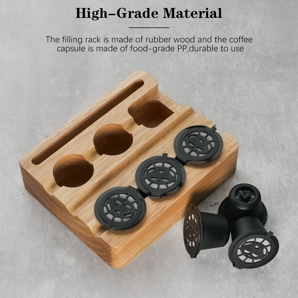 1 ENSEMBLE Personnalisé 1 PIÈCE Outil de remplissage de café en bois facile à sceller et à ranger 6 PIÈCES Capsules rechargeables pour machines Nespresso Original Line