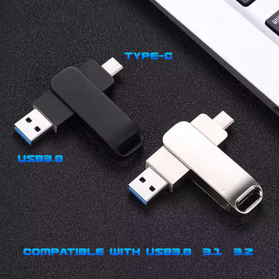 Clé USB OTG Métal Grande Capacité 1 To avec Interface Type C + USB, 8 Go 16 Go 32 Go 64 Go 128 Go 256 Go 512 Go USB2.0 USB3.0