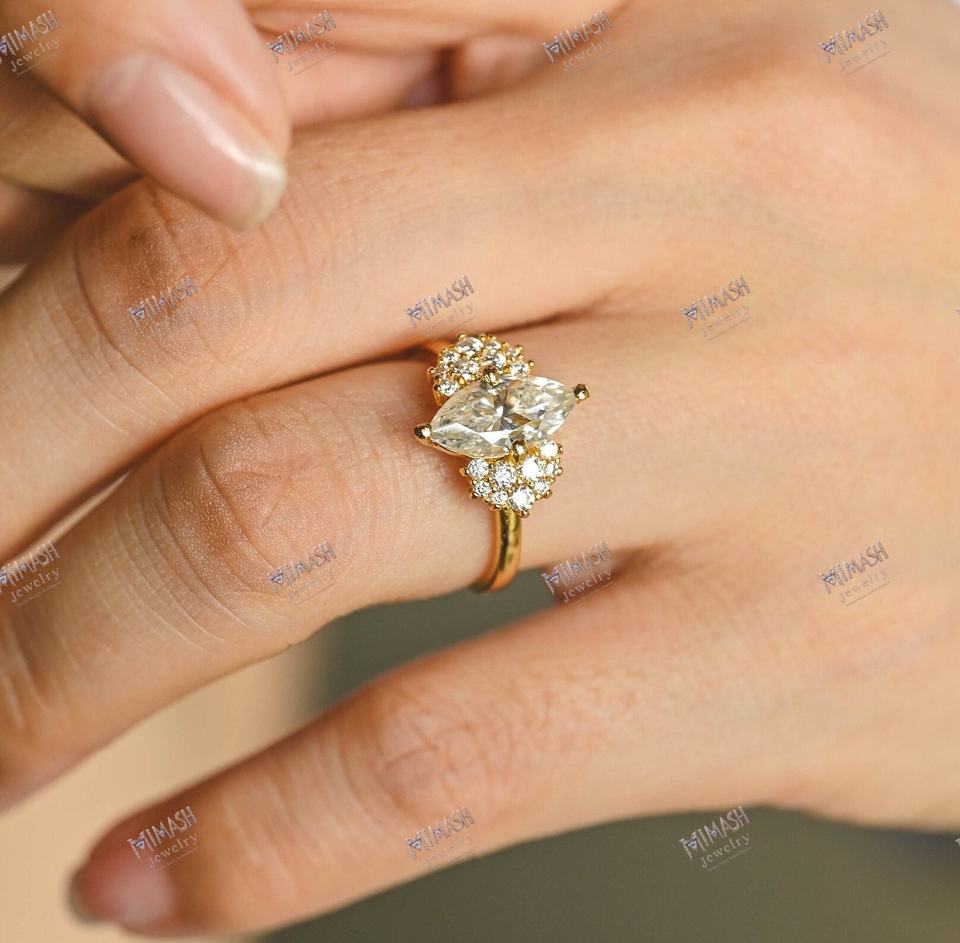 1ct Bague de fiançailles en diamant taille Marquise avec halo étincelant dans un cadre élégant d'inspiration vintage