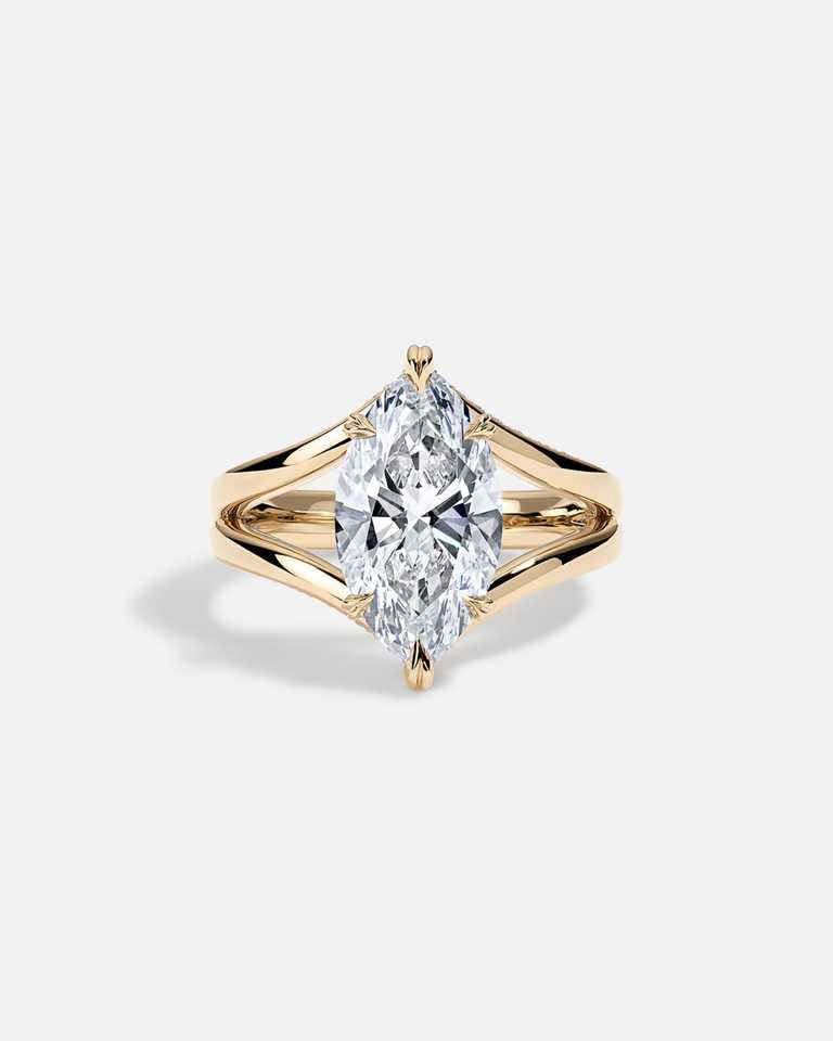 Bague de fiançailles solitaire en diamant de laboratoire taille marquise 1 carat, bijoux fins, or 14 carats, tige fendue, luxe minimaliste, certifiée IGI