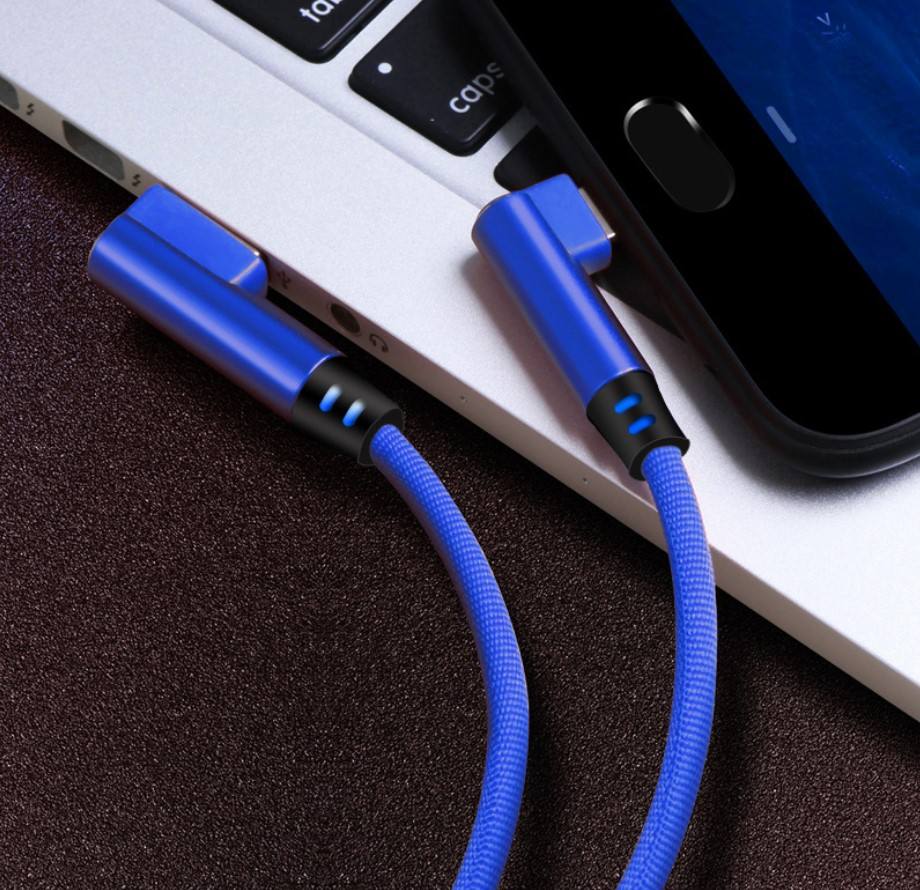 Câble usb tressé double pli en L pour recharge et données, cordon de chargeur usb-c pour iphone 5/6/7/8/plus/x/11/12/13/90 degrés, 1m/1m et 3 pieds
